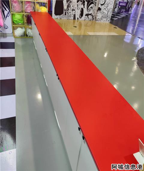 新打的长条红色柜子,没用上,全新有隔层,长2.4米,宽0.6米,高0.75