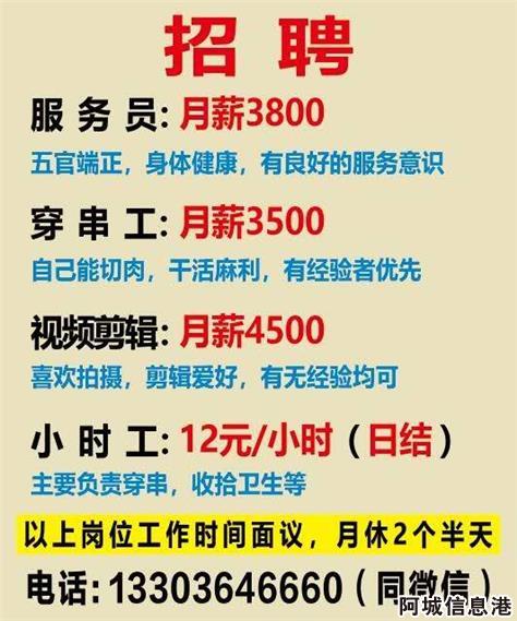 草根涮串招聘服务员,穿串工,小时工