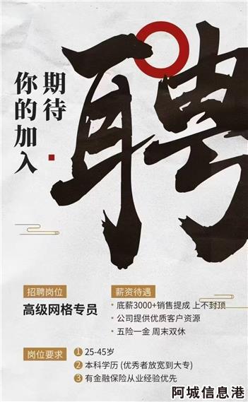 招聘职位:高级保险服务专员