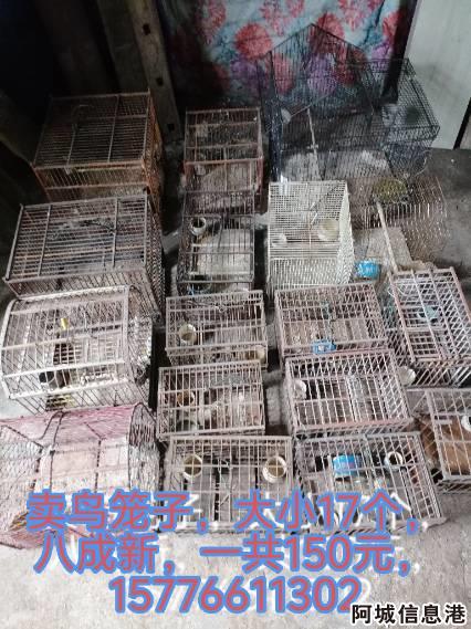 卖鸟笼子,大小共17个,一共150元出售,有铁的,有竹子的,都是好的,九成新。