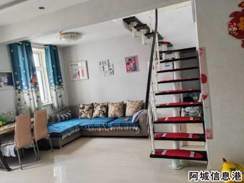 出租房屋介绍:六带七复试 拎包入住 冰箱 洗衣机 热水器都有 上下140平米 有18平外阳台 烧烤 晒衣服 冬天储藏东西都可以 年租金12500 适合两代居住