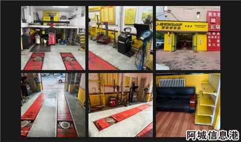 含举升机、维修设备、工具、配件齐全,、装修、院落、工位齐全。